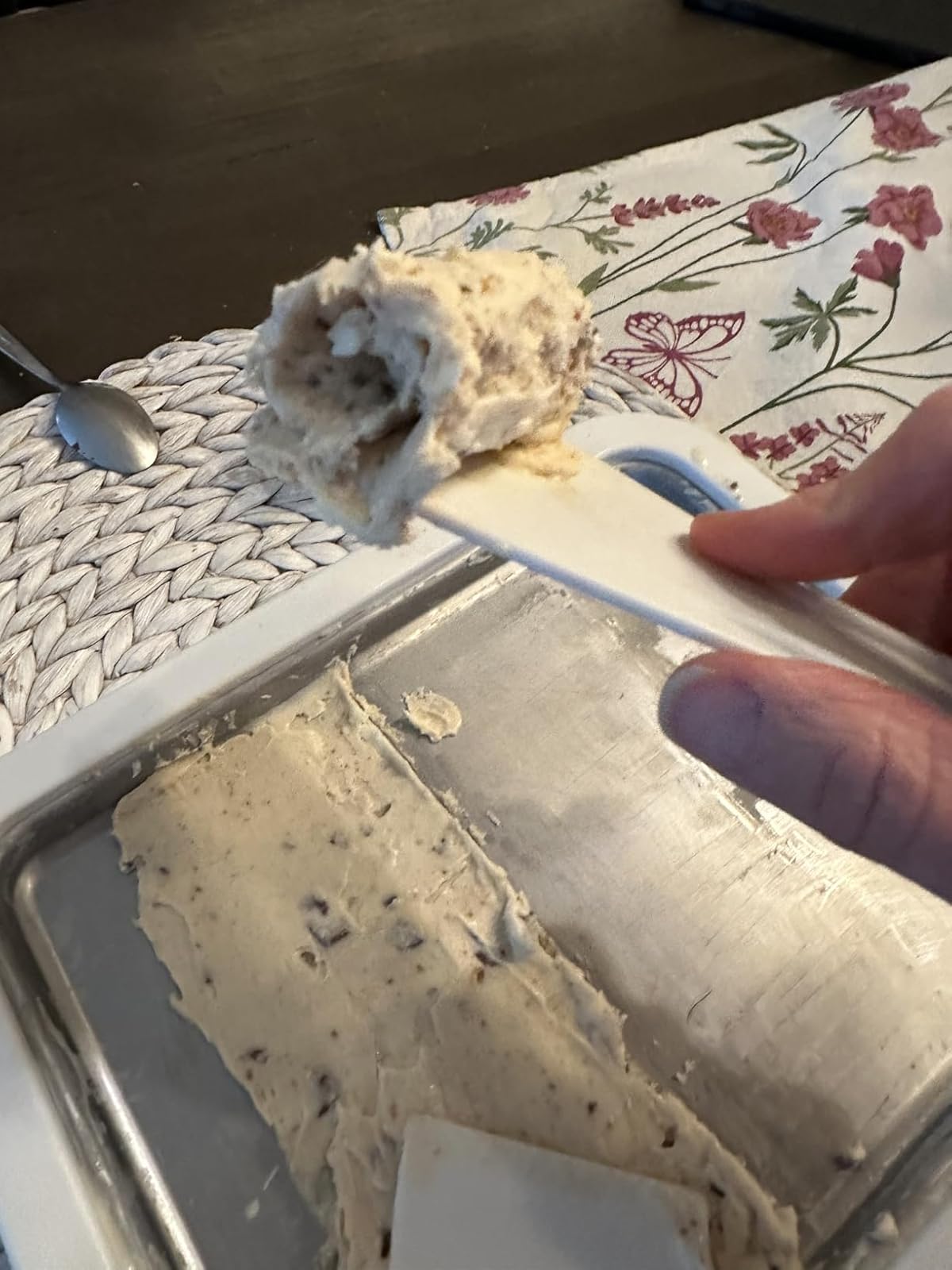 The tray stays frozen for about 30 minutes — just enough time to make 4–5 batches of ice cream before it needs to be re-frozen.